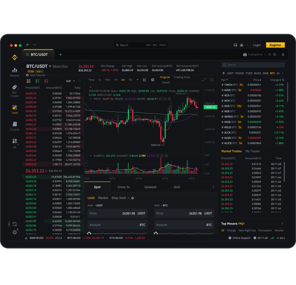 Trade hundreds of cryptocurrencies on different markets.